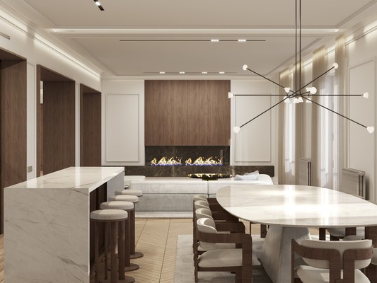 The soaring 3-meter-high ceilings further enhance the sense of space and grandeur.